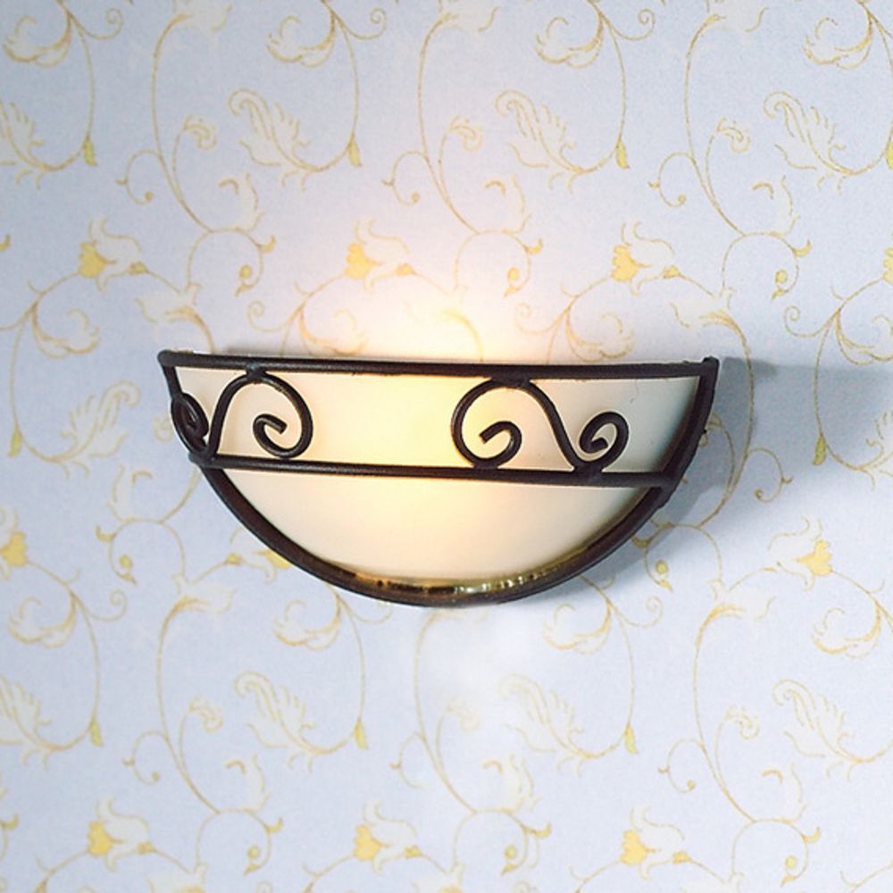 Half circle dollshouse wall light with decoration. Includes wire, plug & replaceable bulb.