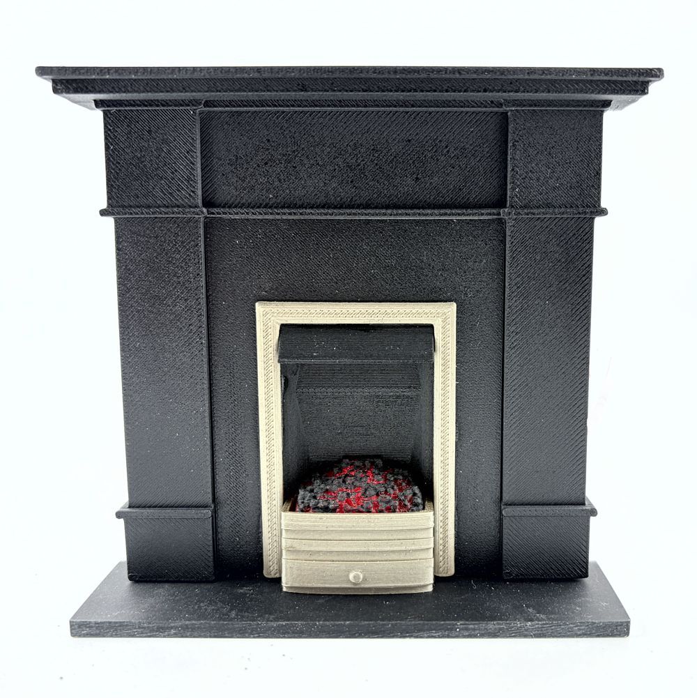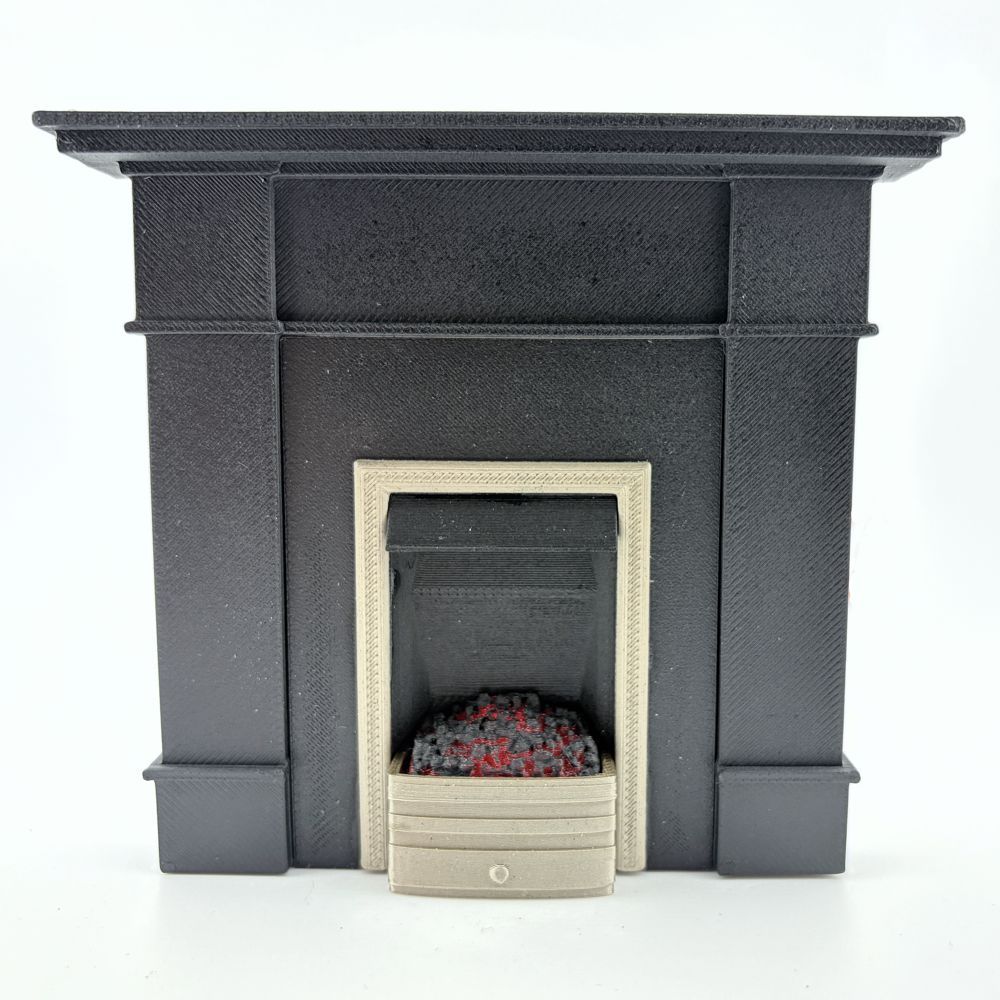 Dolls House fireplace with Glowing Fire.  Includes with FLICKERING 12V LED bulb.