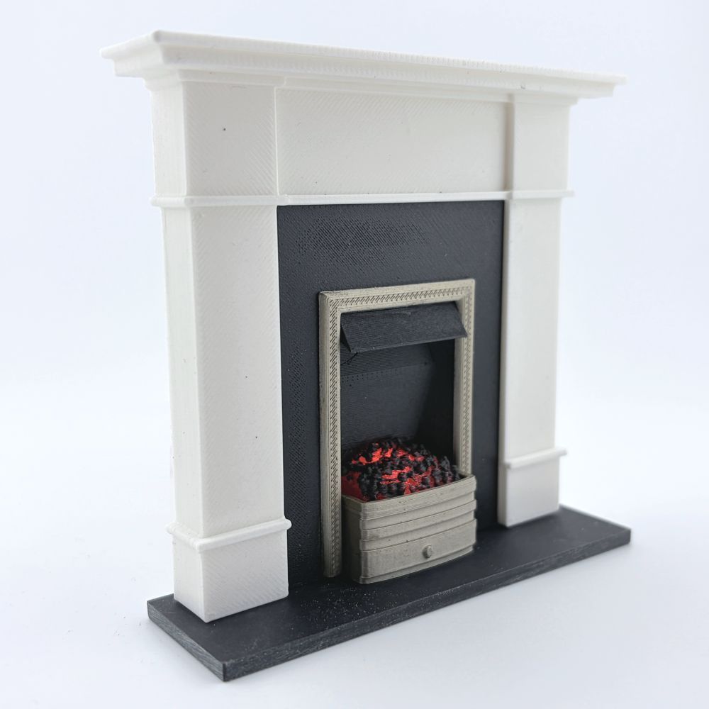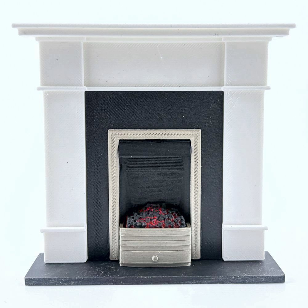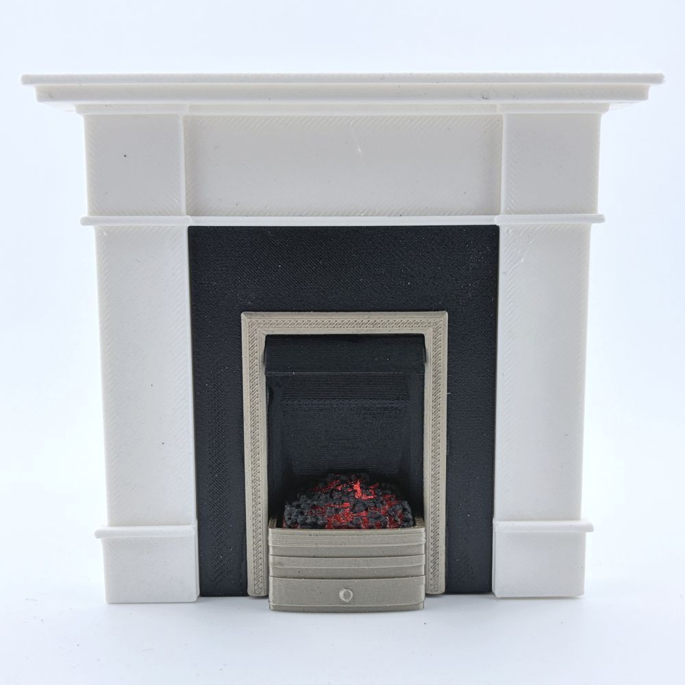 Dolls House fireplace with Glowing Fire.  Includes with FLICKERING 12V LED bulb.