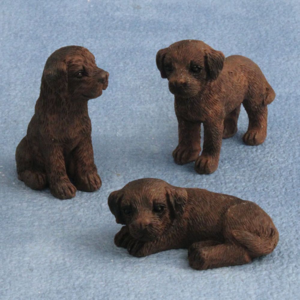 Labrador Puppy Chocolate Figures. Pack of 3 dogs in different poses. 1:12 scale.
