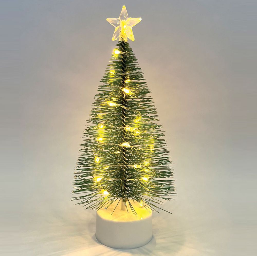 Christmas tree with white battery powered LED lights for 1:12 scale dolls house.